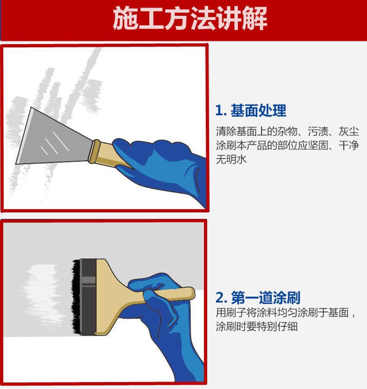 3、本產(chǎn)品可用滾、刮、涂三種方式進(jìn)行施工。